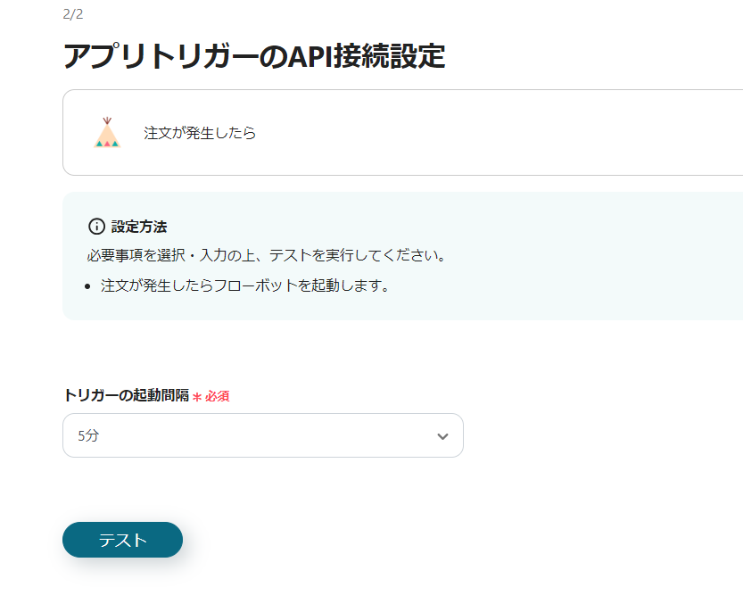2) トリガーの起動間隔を選択し、「テスト」をクリックします。