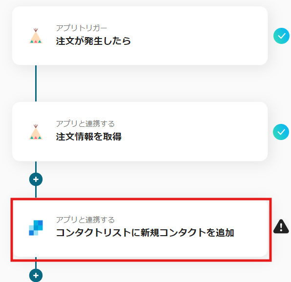1) フローに戻り、「アプリと連携する コンタクトリストに新規コンタクトを追加」のアイコンをクリックします。