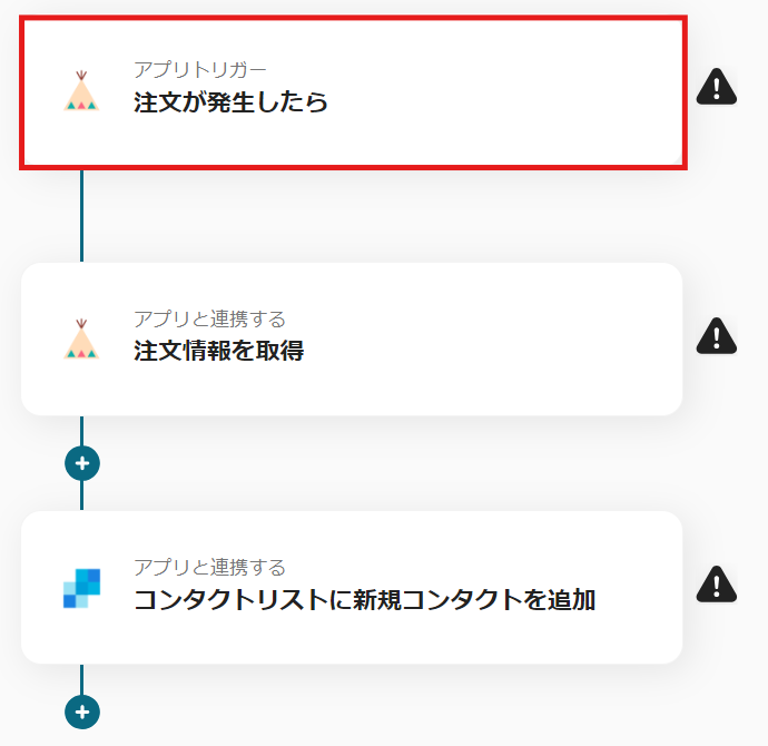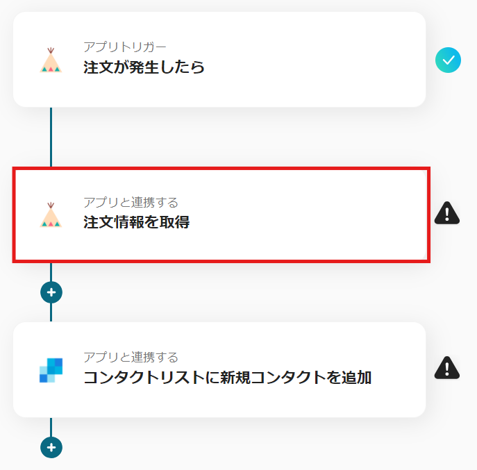 1) フローに戻り、「アプリと連携する 注文情報を取得」のアイコンをクリックします。