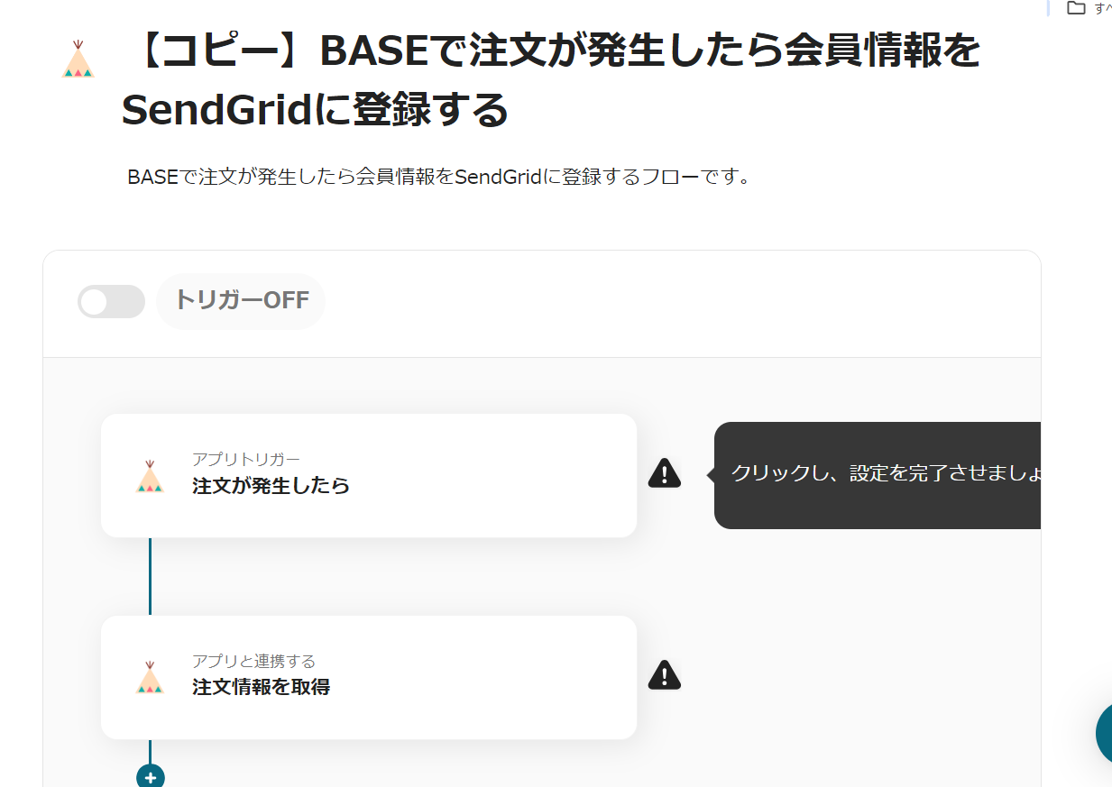 今回は、【BASEで注文が発生したら会員情報をSendGridに登録する】というフローを作成します。