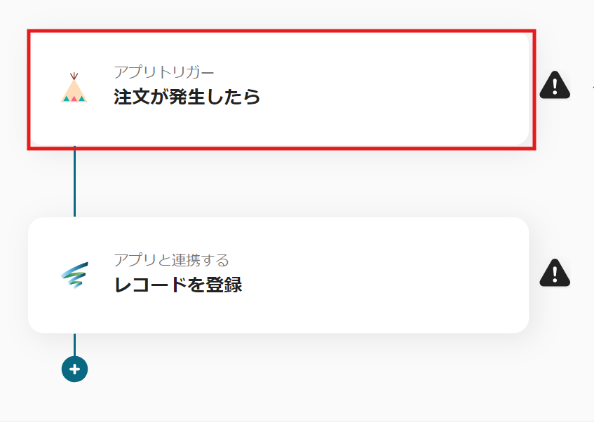 右に表示される「!」のアイコンを順番にクリックし、フローを編集していきます。