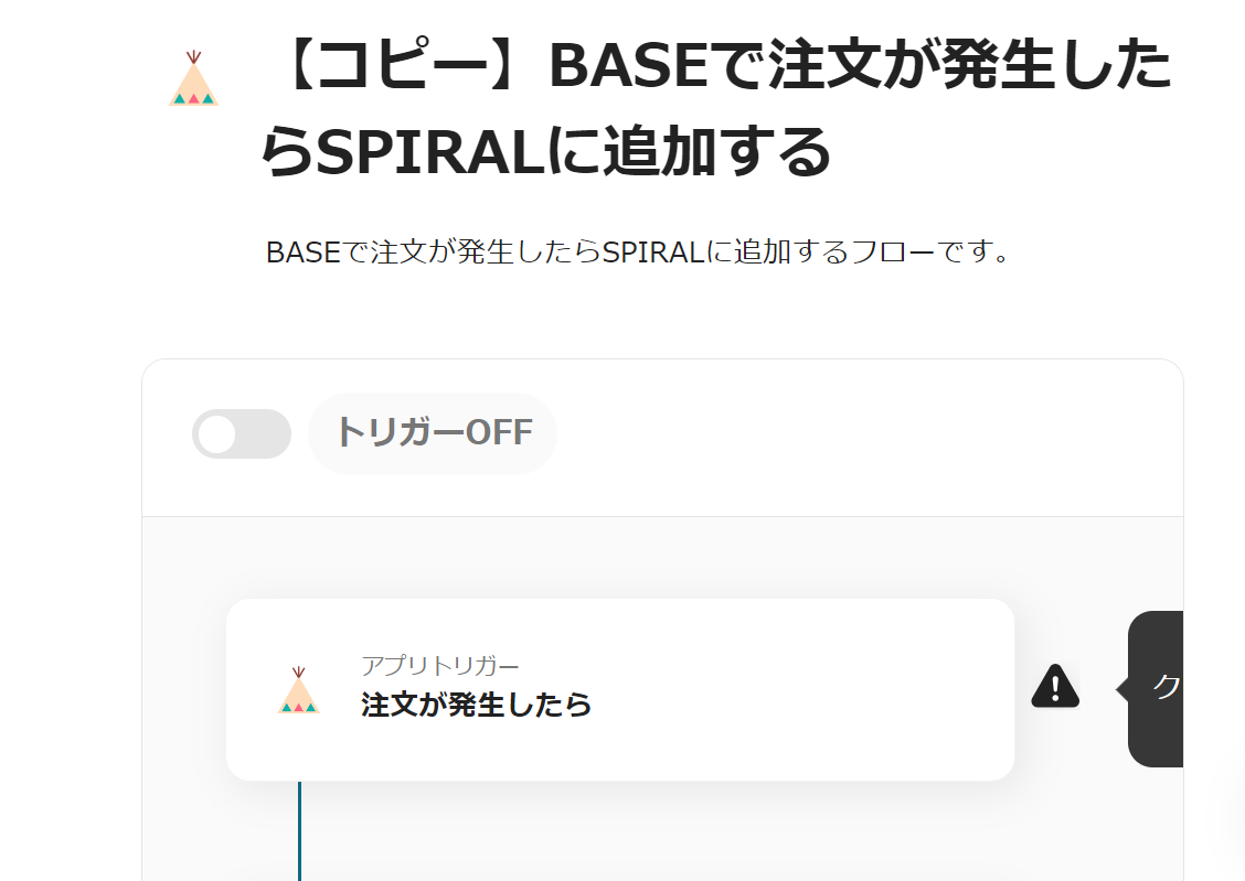 今回は、【BASEで注文が発生したらSPIRALに追加する】というフローを作成します。