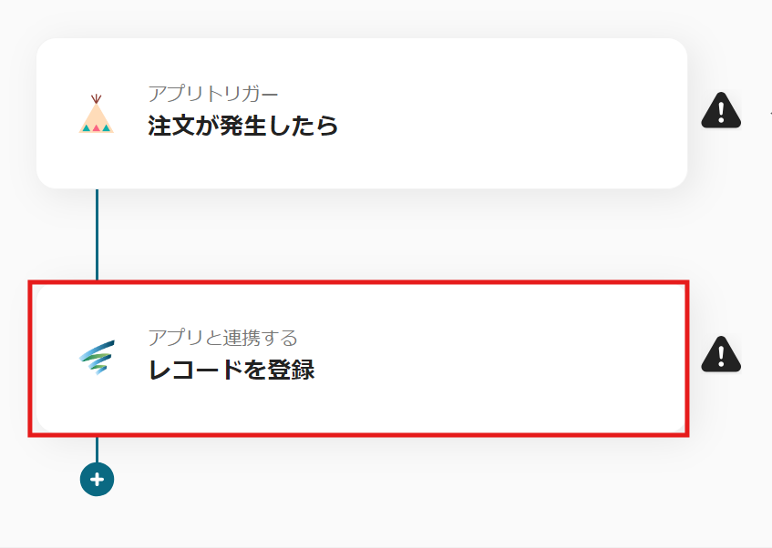 6) フローに戻り、「アプリと連携する レコードを登録」のアイコンをクリックします。