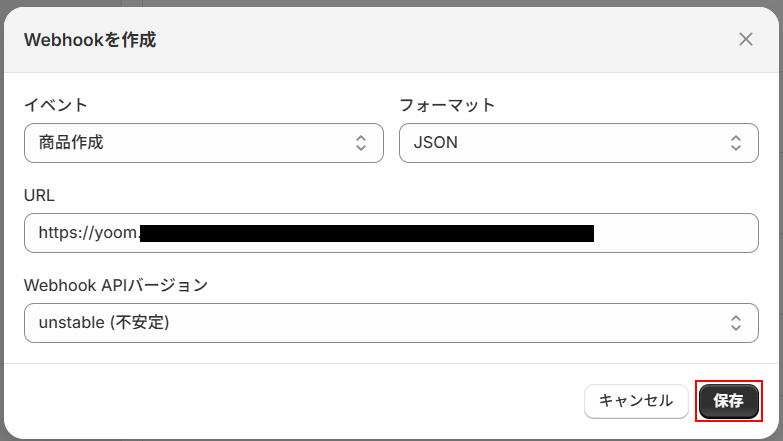 Webhookの設定を行います。