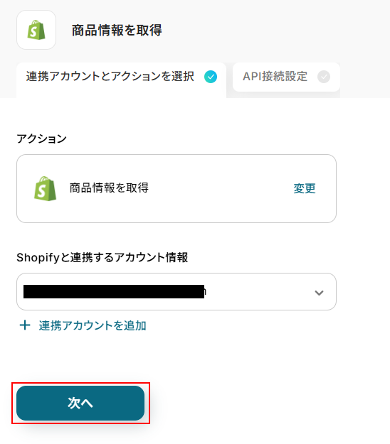 ステップ4:Shopifyの商品情報を取得する設定