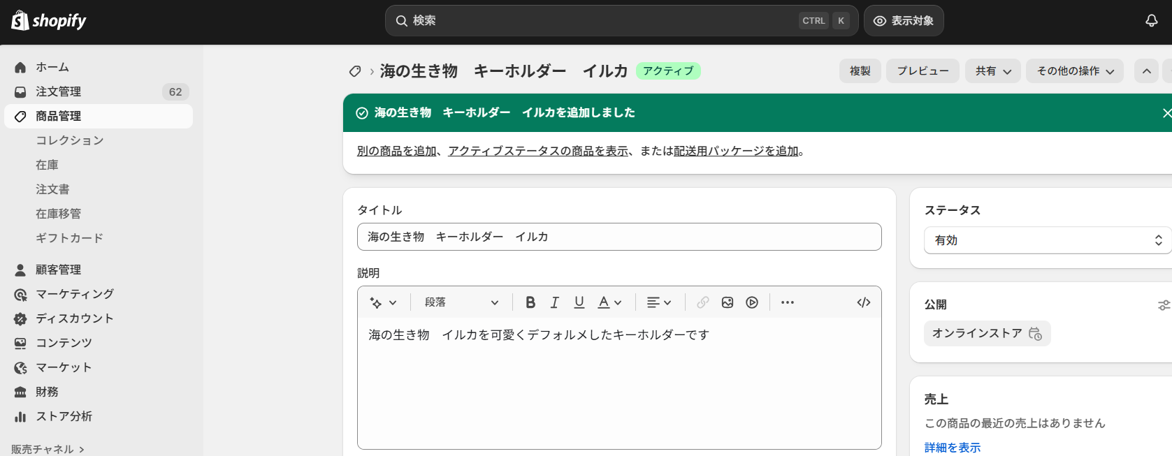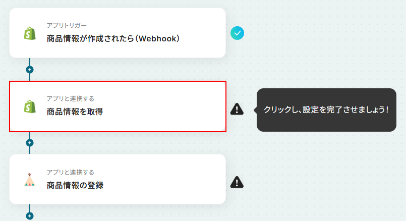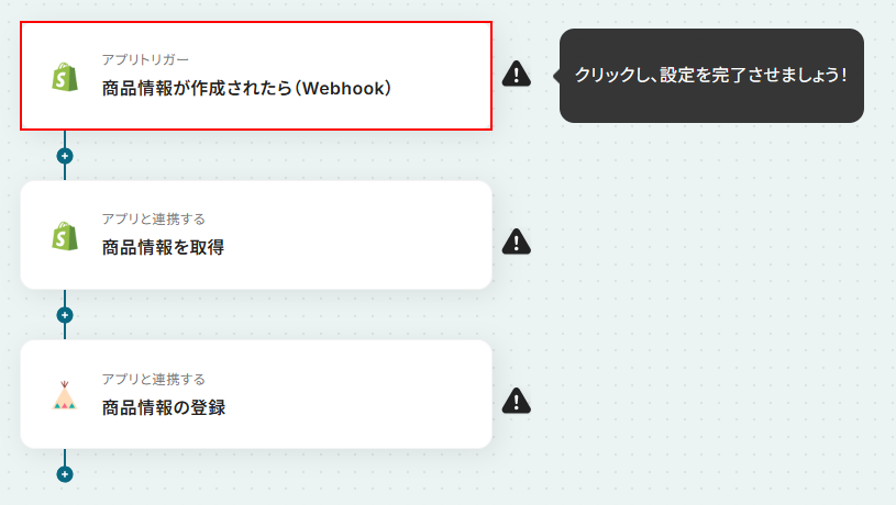 今回ご紹介するテンプレートはShopifyに商品情報が作成されたら起動します。