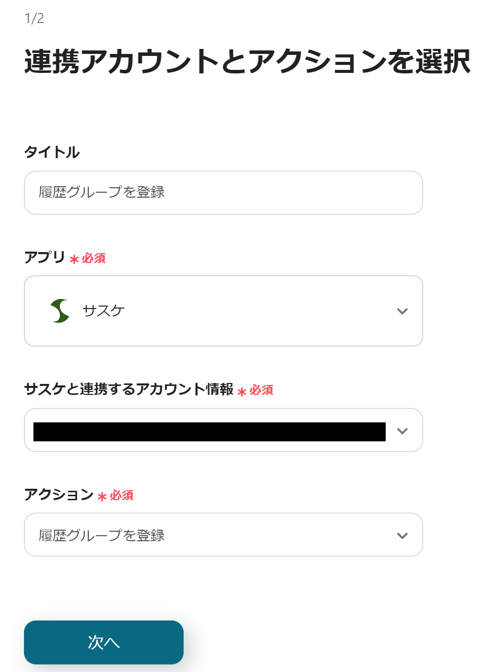 サスケの設定を行うため、「履歴グループを登録」をクリックしましょう。
