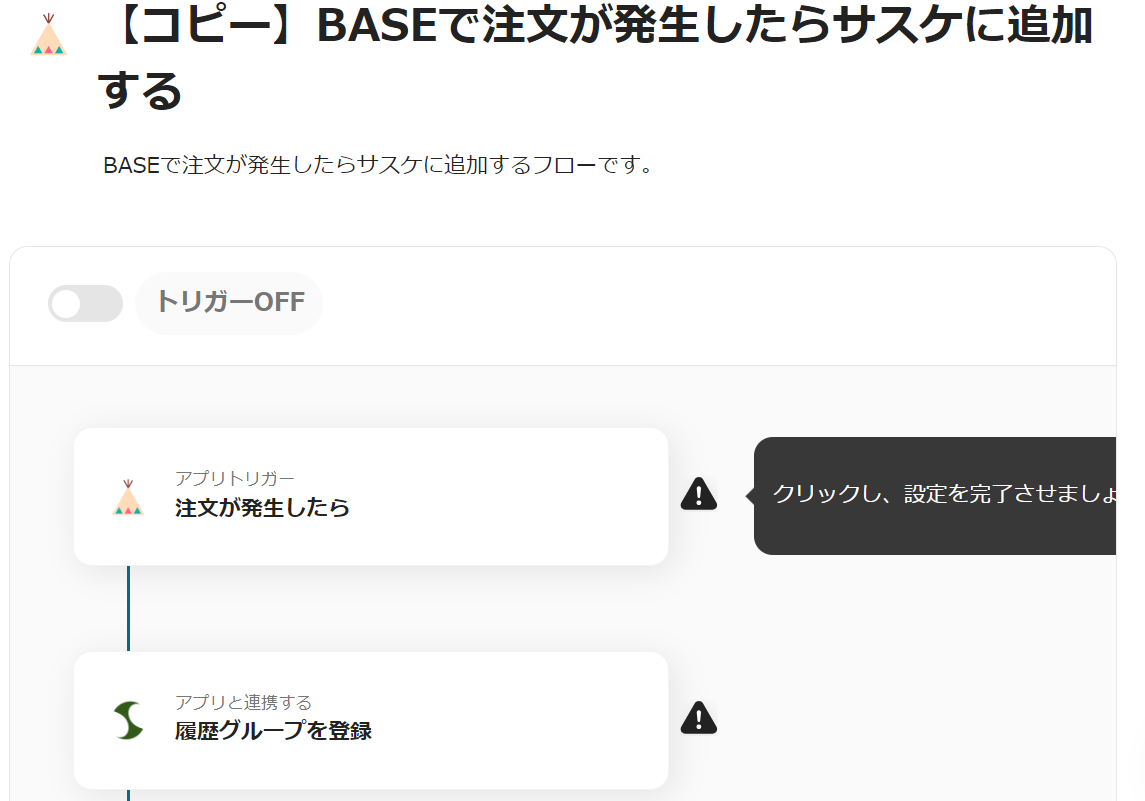 今回は「BASEで注文が発生したらサスケに追加する」という以下のテンプレートの設定方法をご紹介します。