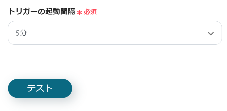 以下の画面が表示されたら、「トリガーの起動間隔」を5分、10分、15分、30分、60分から選択しましょう。