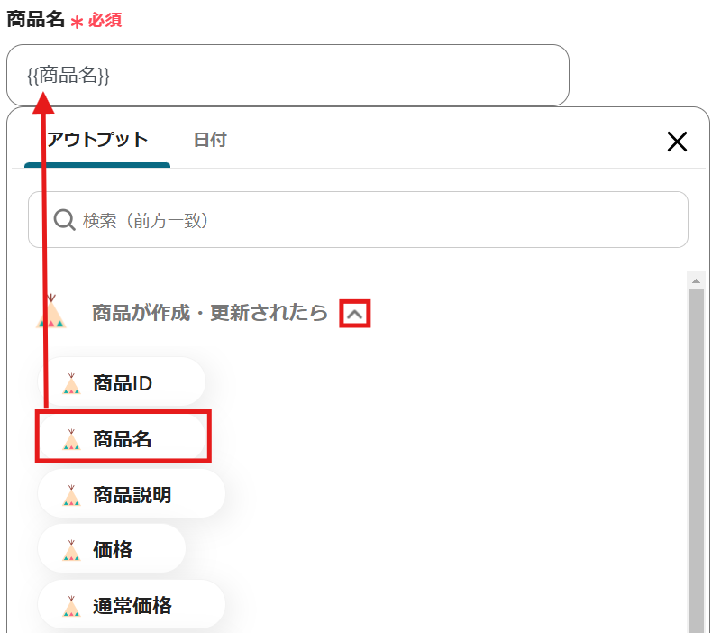 次に、「商品名」や「商品単価」などの項目を設定します。