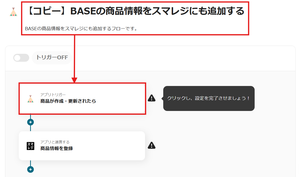 ステップ3:フローの起点となるBASEのトリガー設定とその後に続くスマレジのオペレーション設定