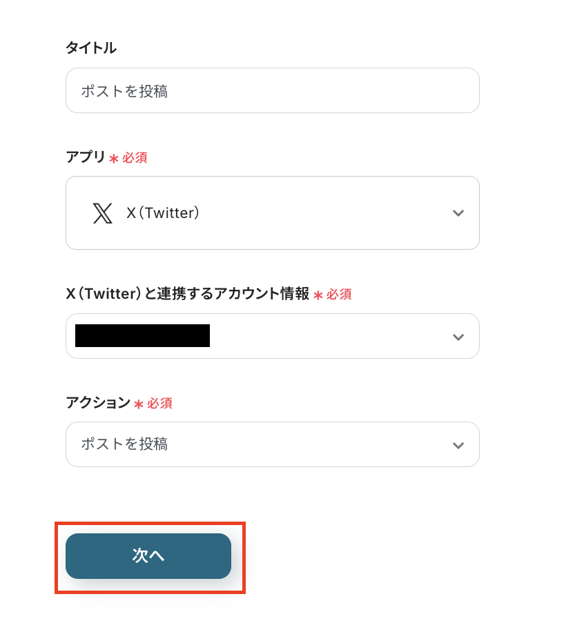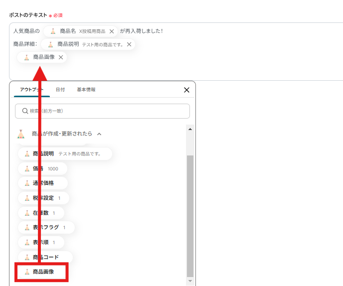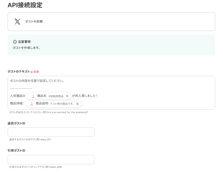 続いて、BASEから取得した商品情報を基に、X(Twitter)に自動ポストする設定を行います。