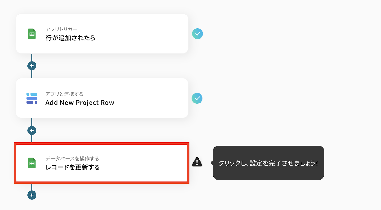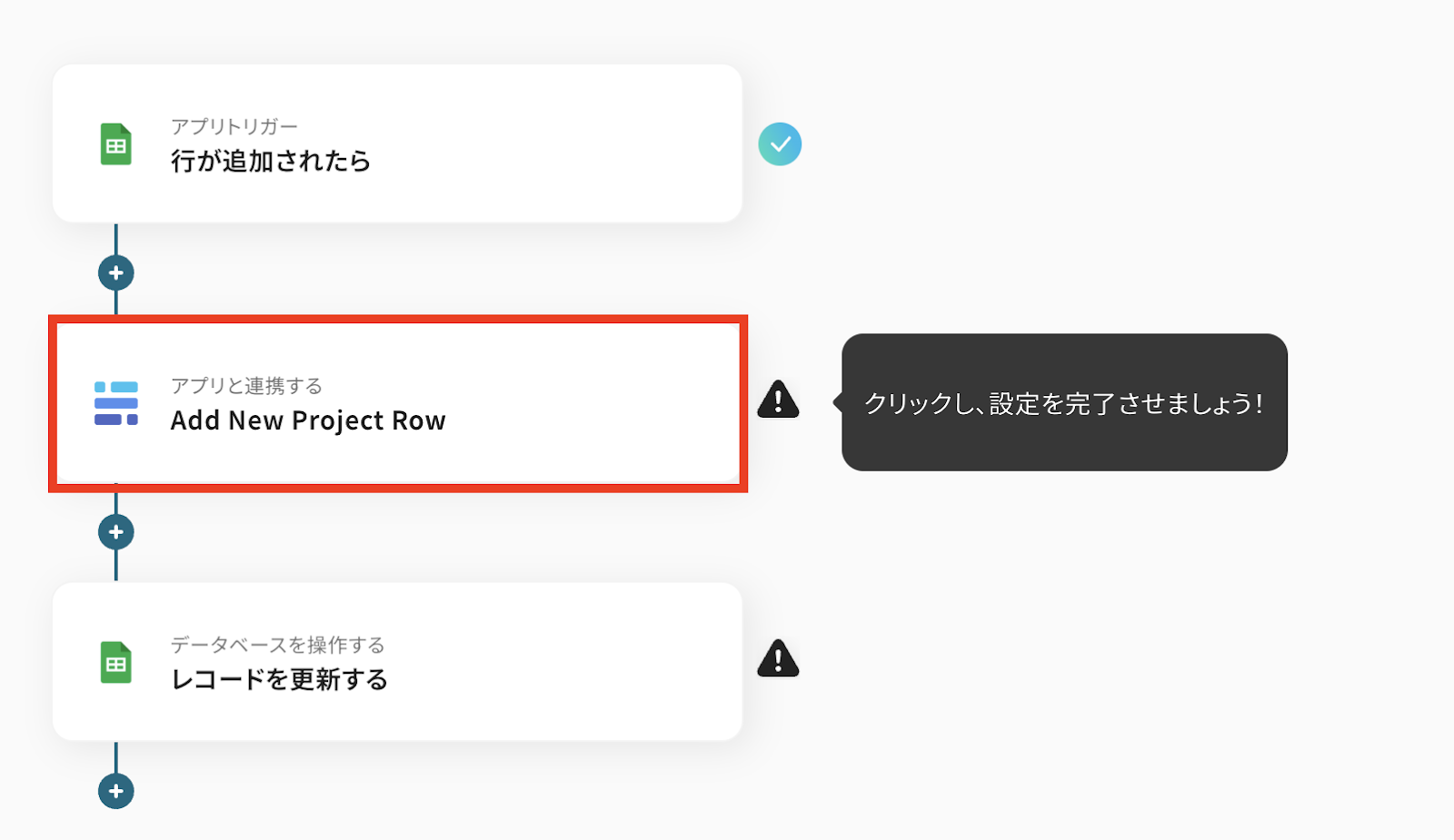 以上が、Google スプレッドシートに行が追加されたら、BaserowにProject Rowを追加する連携手順になります。