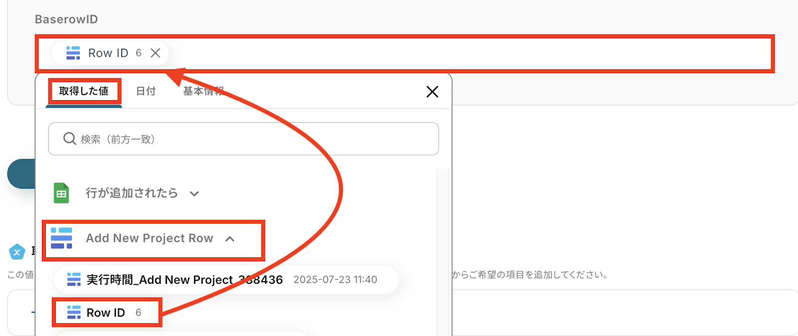 Google スプレッドシートに行が追加されたら、BaserowにProject Rowを追加する