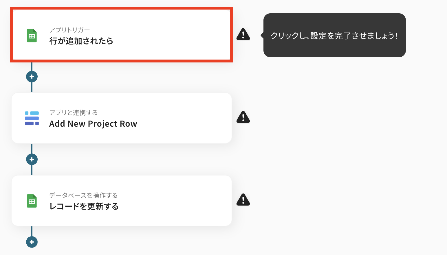 今回は「Google スプレッドシートに行が追加されたら、BaserowにProject Rowを追加する」という実際のフローボットも作成していきます! 作成の流れは大きく分けて以下です。
