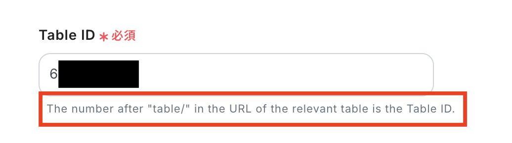 作成したTableの「Table ID」を赤枠の説明文を確認しながら入力してください。