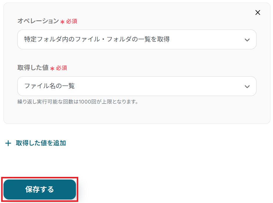 ※繰り返し実行可能な回数は1000回が上限です。