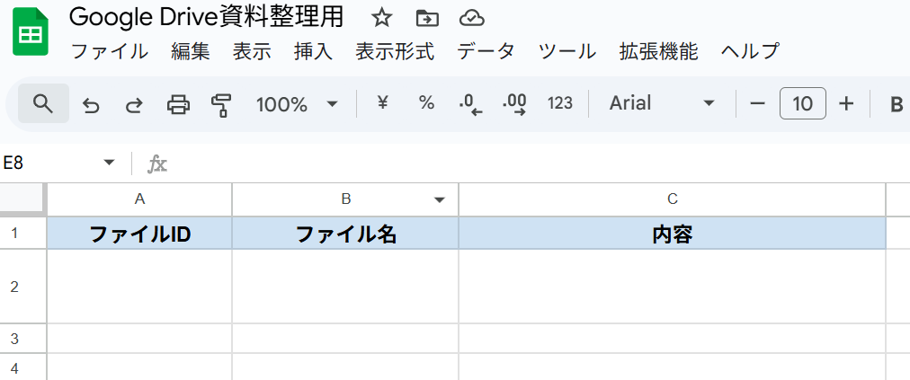 まず準備として、ファイル情報を追記するためのシートを用意しましょう。