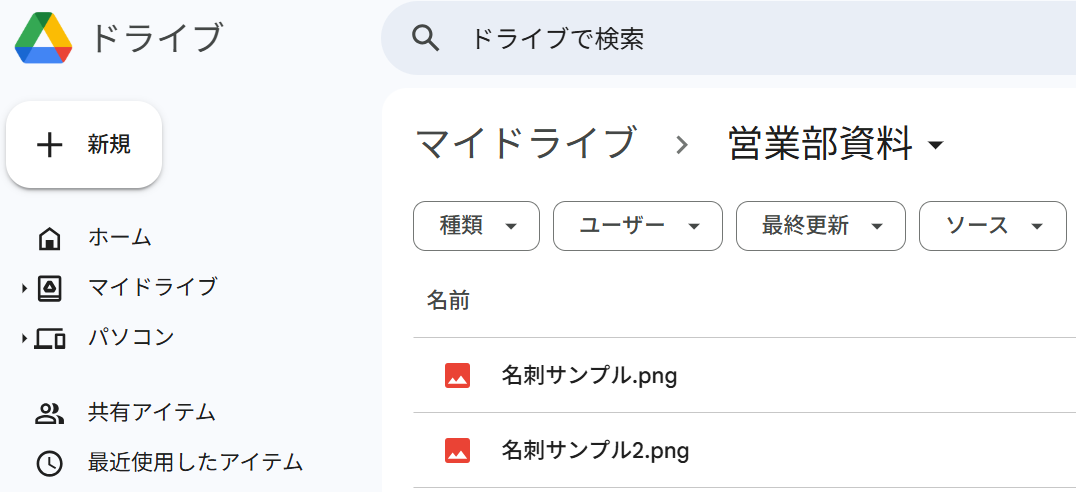 今回は例として名刺のサンプル画像を2枚格納しました。