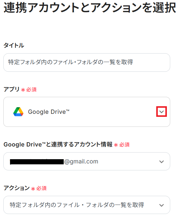 ステップ4:Google Driveでファイル情報を取得する設定