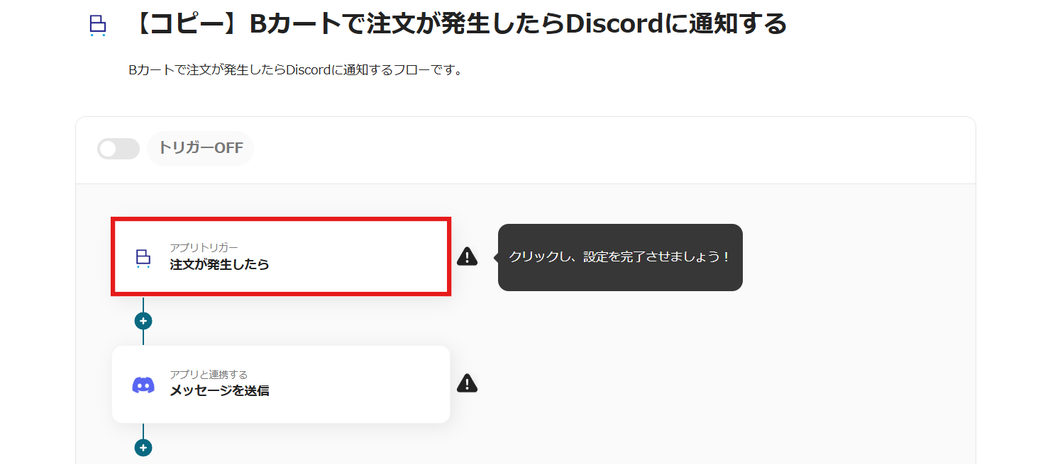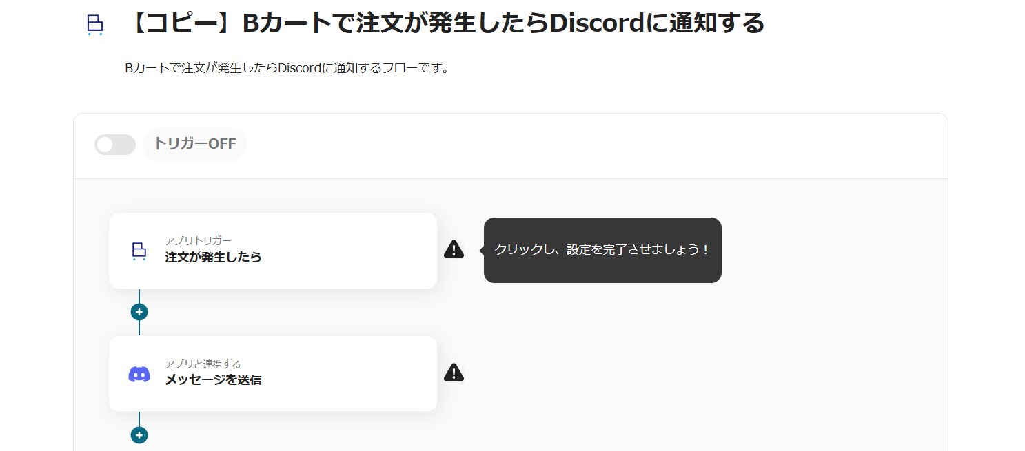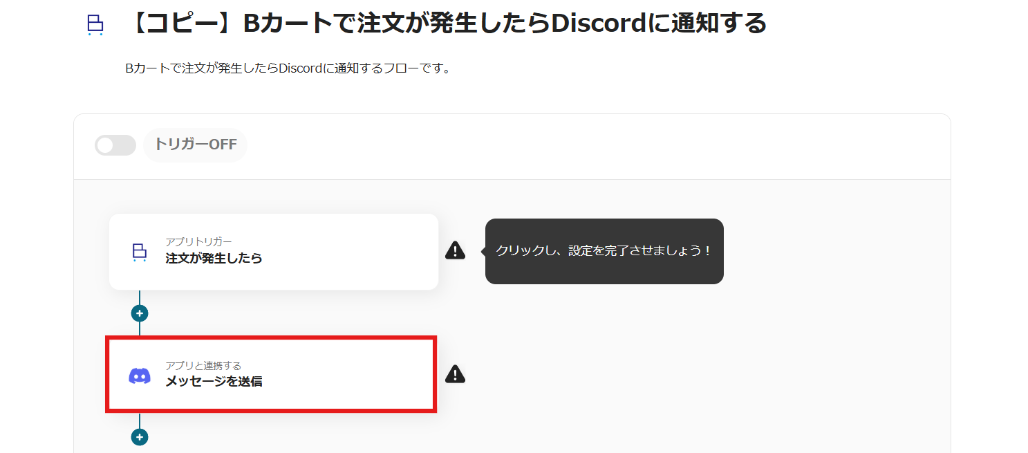 ・トリガーボタンをONにして、BカートとDiscordの連携動作を確認