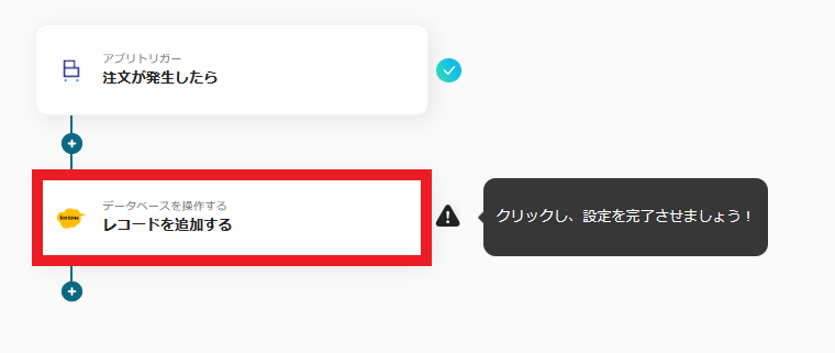 1.フローに戻ります。最後に、「レコードに追加する」のアイコンをクリックしてください。