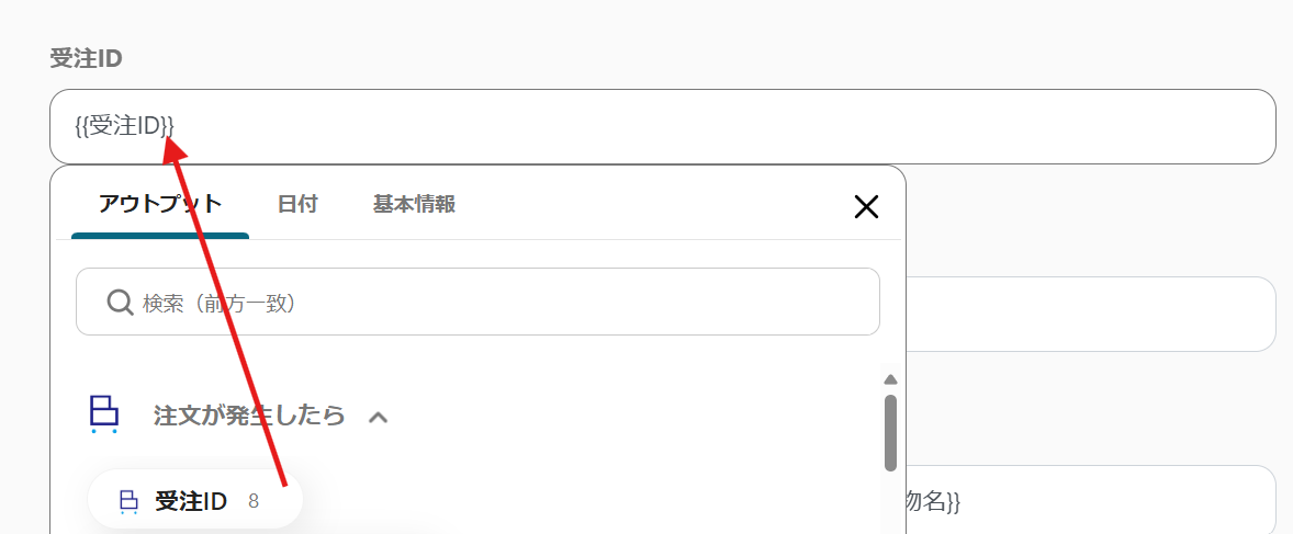 次に進み、追加するレコードの値をアウトプットから選択していきましょう。