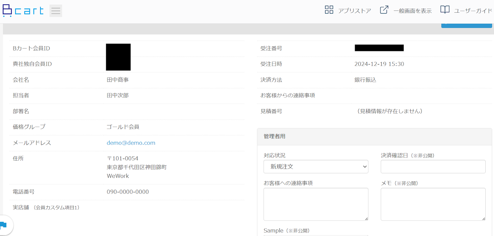 Bカートの注文内容をBカートのAPIを利用して受け取り、