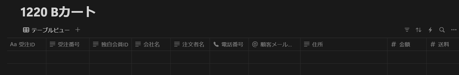 Bカートで注文が発生した際にNotionに自動で追加されることにより、注文データの一元管理が可能になります。