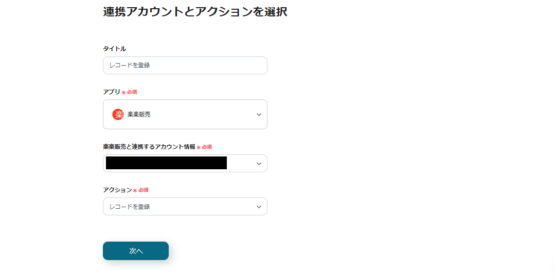 次に、「レコードを登録」という項目をクリックし、設定していきます。