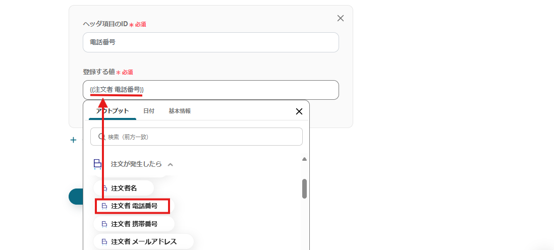 注文者の電話番号を自動取得できるように設定しました。