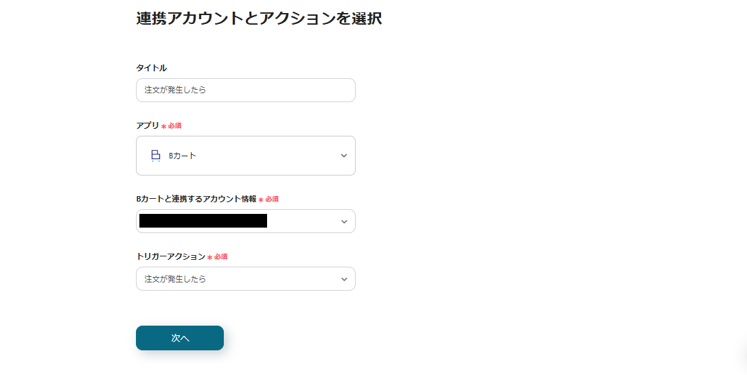 これで、「Bカートで注文が発生したら楽楽販売に追加する」フローの完成です。