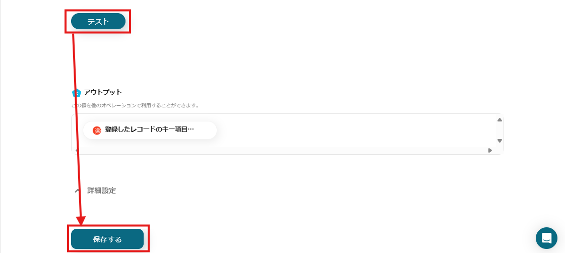 テストが成功しアウトプットが反映されたら「保存する」をクリックします。