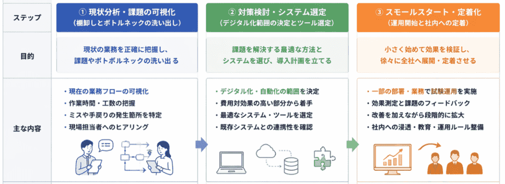まずは経費精算や請求書処理など、身近で効果を実感しやすい業務からデジタル化への第一歩を踏み出し、自社に合った形で経理DXを推進していきましょう!