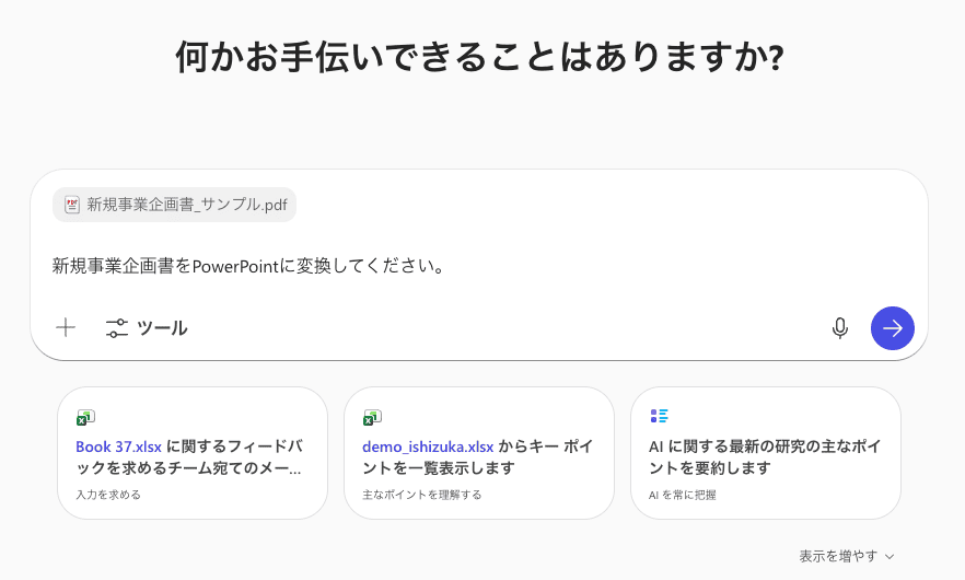 Microsoft 365 Copilotは、Wordで書いた長文の企画書を、ボタン一つでPowerPointのスライドへ変換する精度が高いです。社内ドキュメントが既に存在する場合、それを再利用して資料化する際に威力を発揮します。