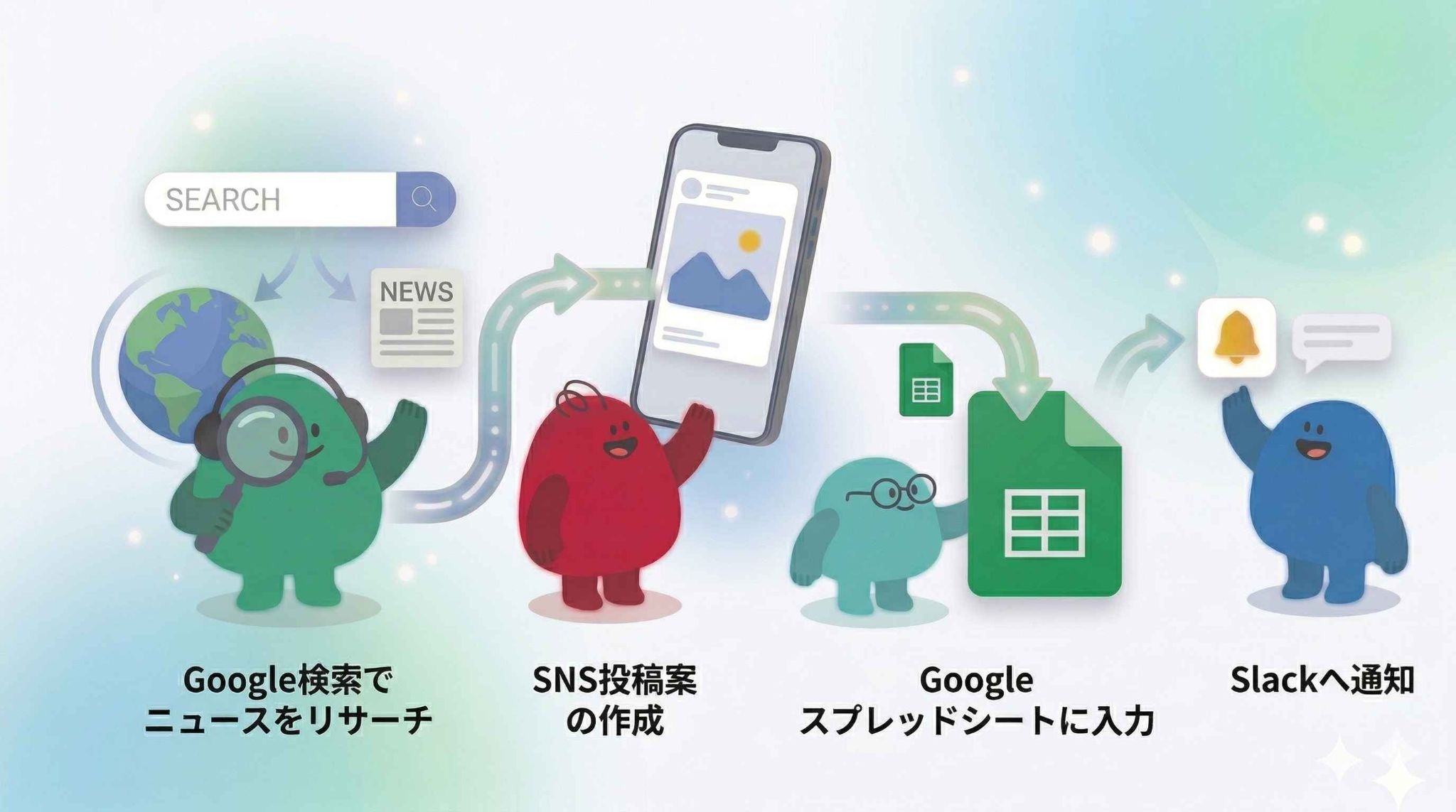 作業にかかる時間は短縮され、人間は「最終的な投稿案をチェックしてOKを出すだけ」という本来のクリエイティブな判断業務に集中できるようになりました。