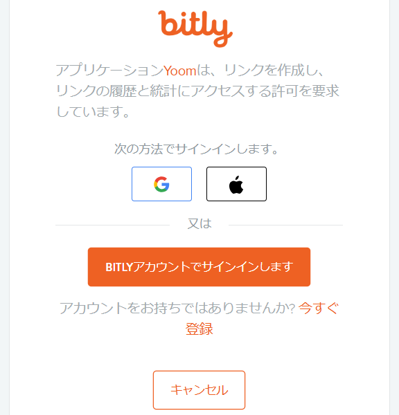YoomがBitlyにアクセスして良いか確認画面になりますので、「Allow」を押して進んでください。