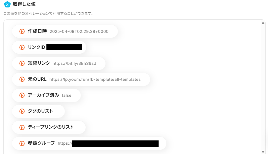 1.次に、前のステップで抽出したURLを短縮する設定を行います。