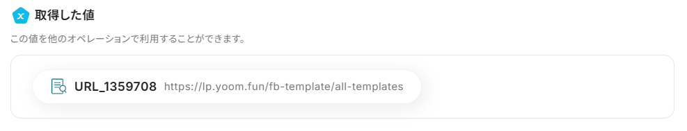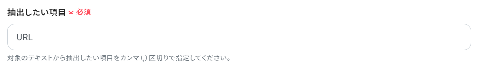 - 抽出したい項目:今回はURLを抽出したので下記のように入力しました。抽出したい項目が複数ある場合は、入力欄下の注釈を参考に設定してください。