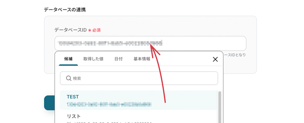 - フィールドをクリックすると、候補のIDが表示されます。