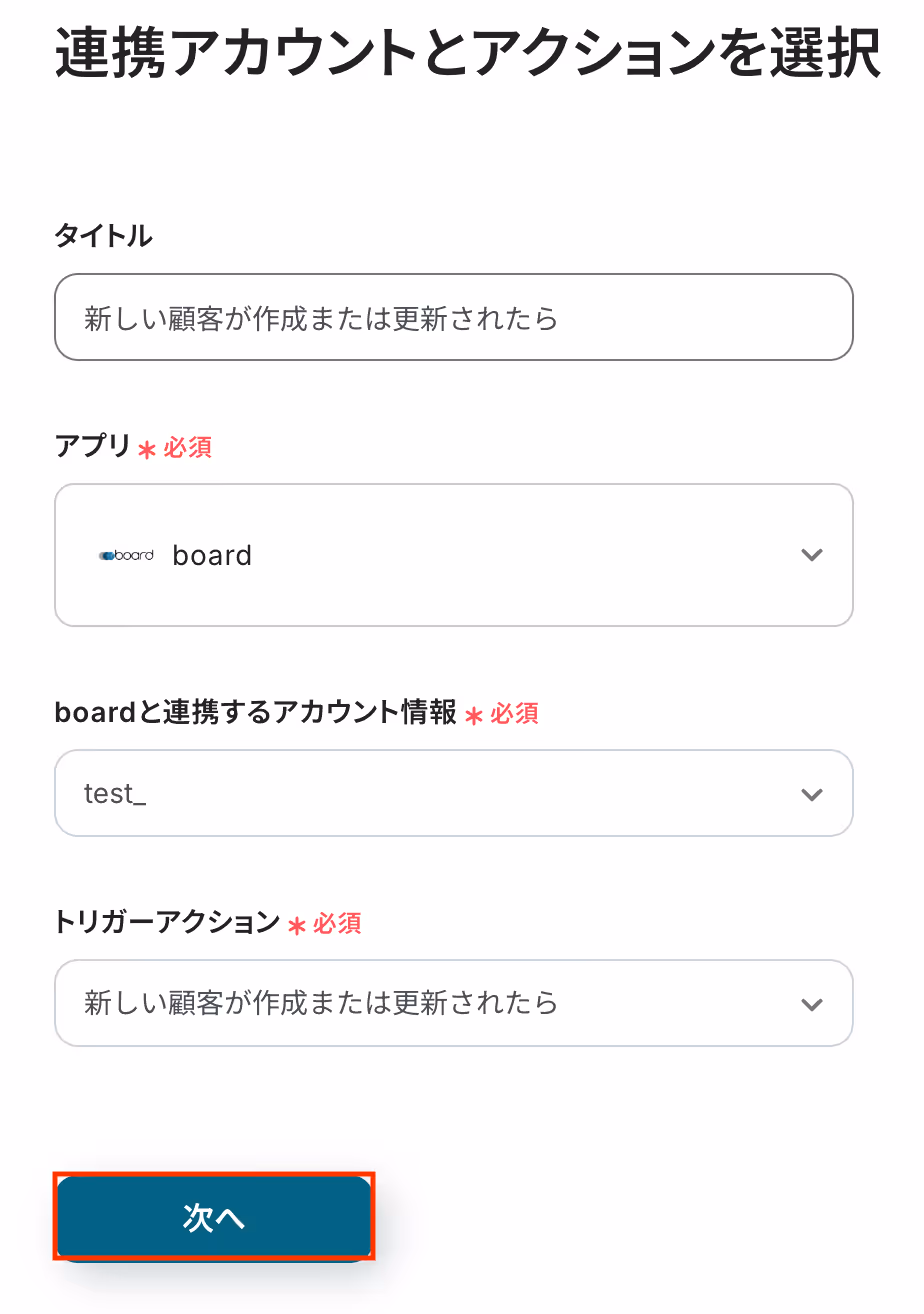 boardと連携するアカウント情報に問題がなければ、「次へ」をクリックします。