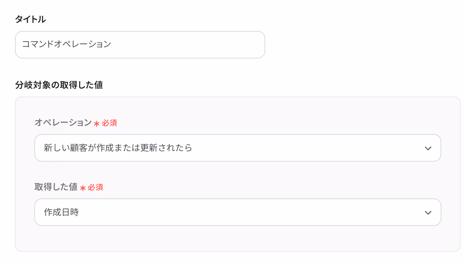 新たに顧客が作成された日時を基準に処理を分ける設定です。