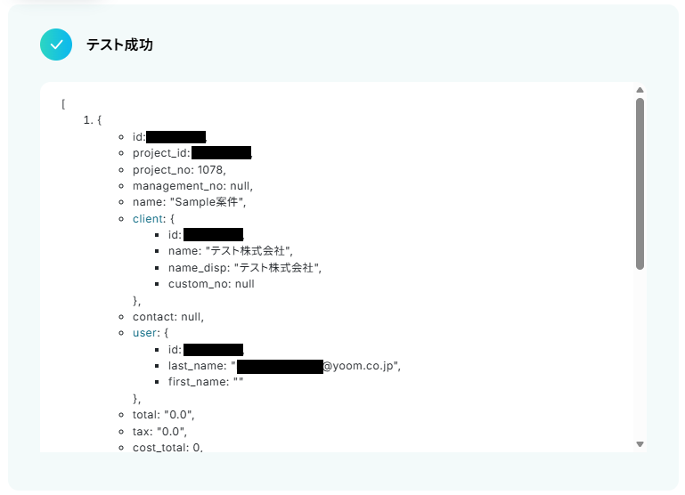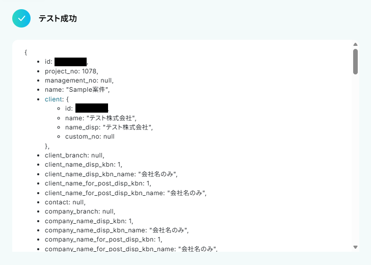 成功すると、取得した値に案件のデータが反映されているはずです。
