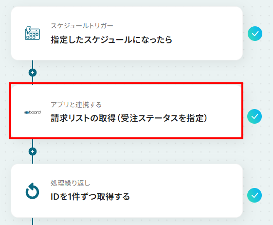 続いて、ステップ3で指定したスケジュールで、boardから自動で請求リストを取得する設定をしていきます。