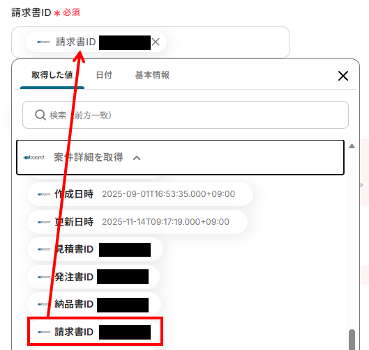 続いて、前のステップと同じようにboardから請求書データを自動で取得する設定をしていきます。