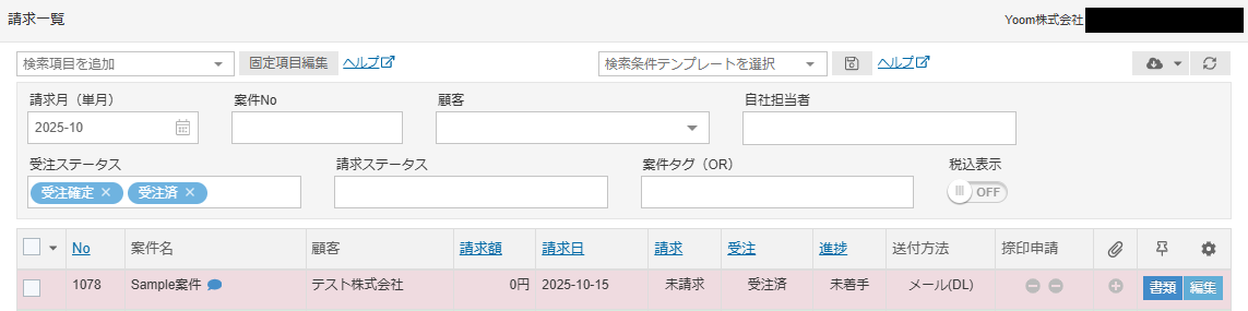 請求リストにデータが登録されていない場合は、テスト用の内容でOKなので、このタイミングで準備してください。