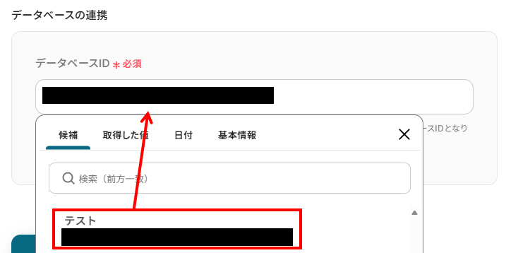 入力欄をクリックすると、候補が表示されるので、レコード追加したいデータベースを選択しましょう。