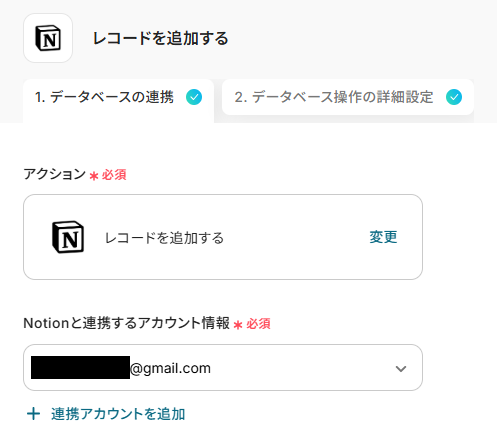 これまでの設定で取得した値を活用してNotionにレコードを追加する設定をしていきます。