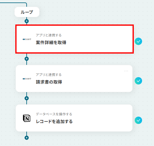 ここでは、前のステップで取得した案件IDを活用して、案件詳細を自動で取得する設定をしていきます。