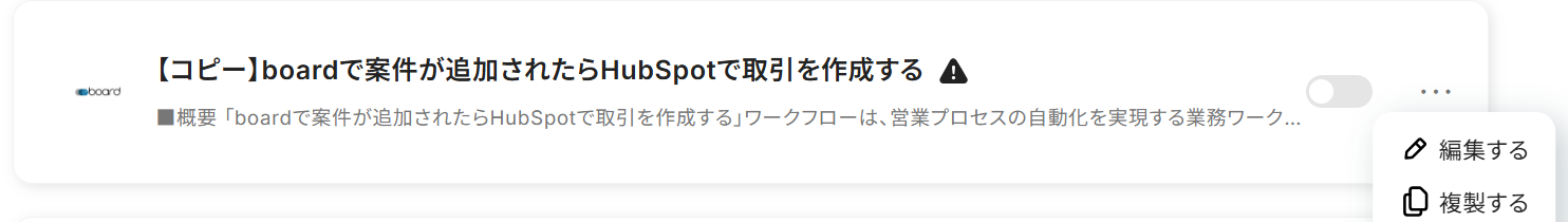 「boardで案件が追加されたらHubSpotで取引を作成する」ワークフローは、営業プロセスの自動化を実現する業務ワークフローです。